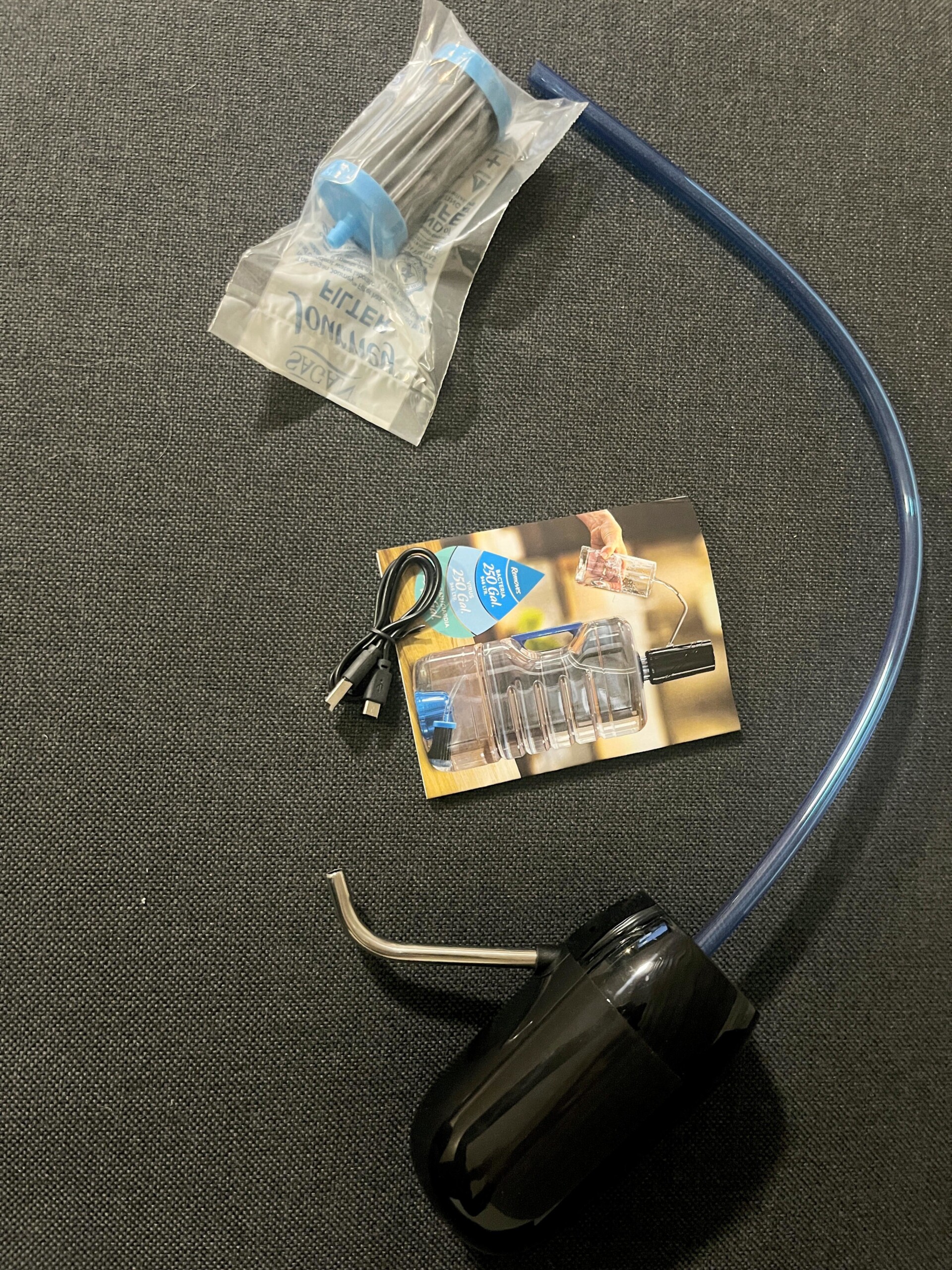 Det hele er designet til at være så brugervenligt som muligt. Du fylder ganske enkelt dunken med vand, placerer slangerne gennem låget, monterer pumpen og trykker på en knap – så har du adgang til filtreret vand direkte fra din dunk.